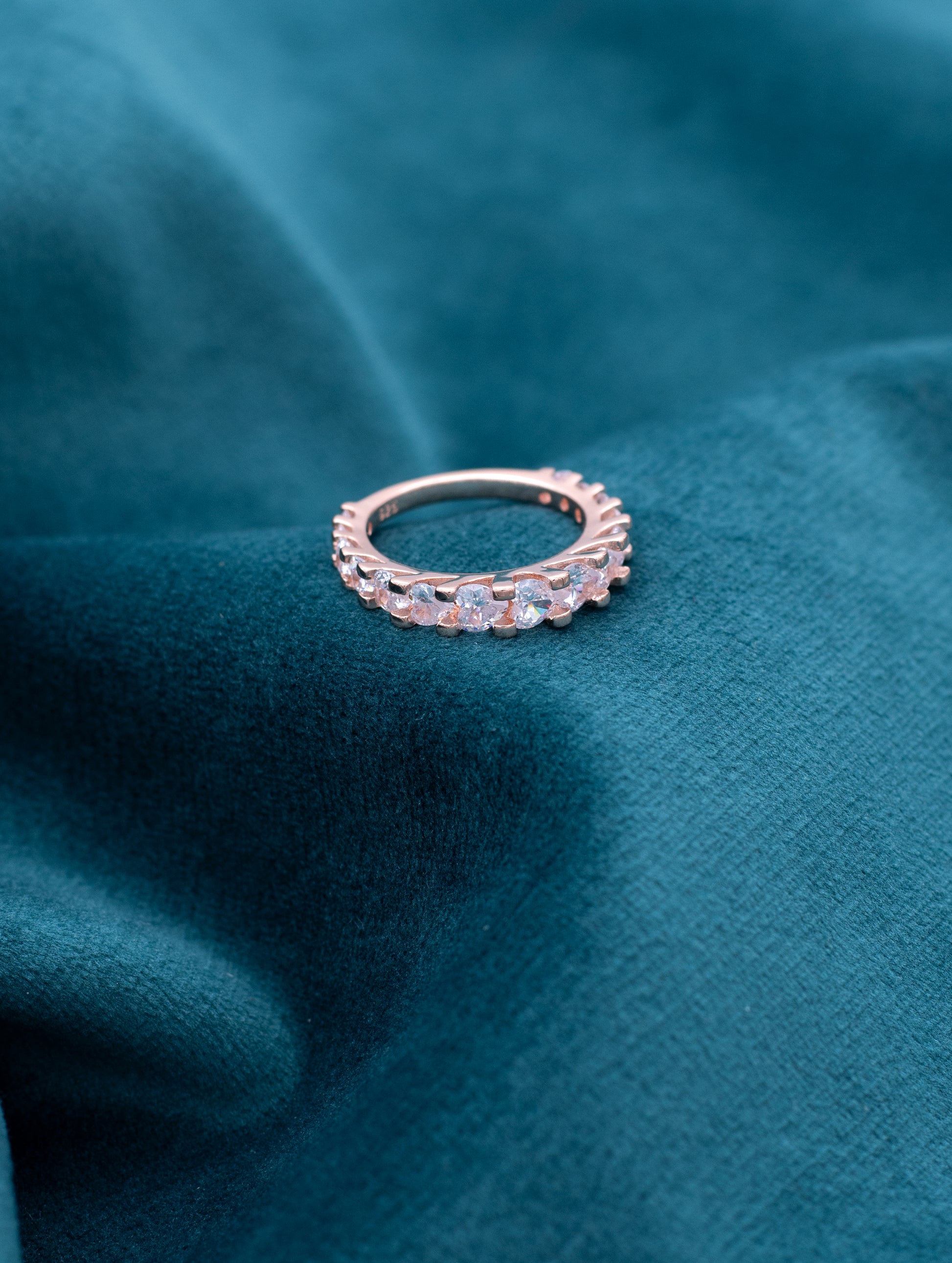 The Dazzling Band of Zircon with rose gold polish is a minimalistic piece of jewelry that is trendy and adds extra style to the appearance.